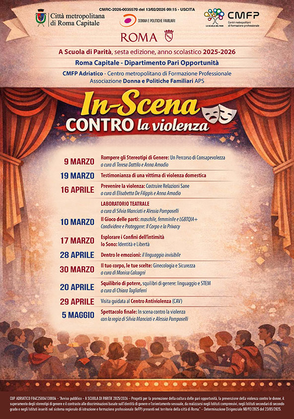 Vengono realizzati diversi interventi nelle classi. Gli incontri sono caratterizzati dalla co-partecipazione di diverse figure professionali: psicologhe, che lavorano sui temi degli stereotipi e delle relazioni tossiche; una ginecologa, disponibile a rispondere a domande e dubbi legati alla prevenzione e alla salute; una testimonianza diretta di violenza di genere, con finalità di sensibilizzazione; e un laboratorio artistico-esperienziale basato sull’empatia e sull’utilizzo creativo del collage. Sarà inoltre presente una scrittrice e divulgatrice esperta di tematiche sociali e culturali, che affronterà il tema del gender gap nelle discipline STEM e il superamento degli stereotipi a partire dal linguaggio. Il percorso prevede anche un laboratorio teatrale centrato su corpo, emozioni e relazioni, offrendo agli studenti e alle studentesse uno spazio per rielaborare i contenuti emersi durante gli incontri e trasformarli in una rappresentazione scenica finale, alla quale saranno invitati genitori e insegnanti. Un ulteriore momento significativo sarà la visita a un Centro Antiviolenza, con l’obiettivo di aumentare la consapevolezza dei ragazzi e delle ragazze rispetto all’esistenza e al ruolo di queste realtà sul territorio.